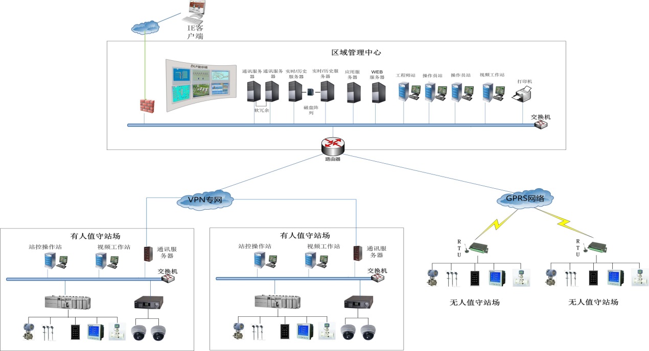 系統除了要保證各個場站的正常生產之外,還要考慮到工程安全、應急預警、運營管理等問題,同時還要完成集團單位對各公司生產管理監督、監測、指揮的作用。因此,該系統具有自動化控制要求高、實時性強、系統龐雜等特點,對全國范圍內各地區的眾多場站實現自上而下的實時自動閉環控制。