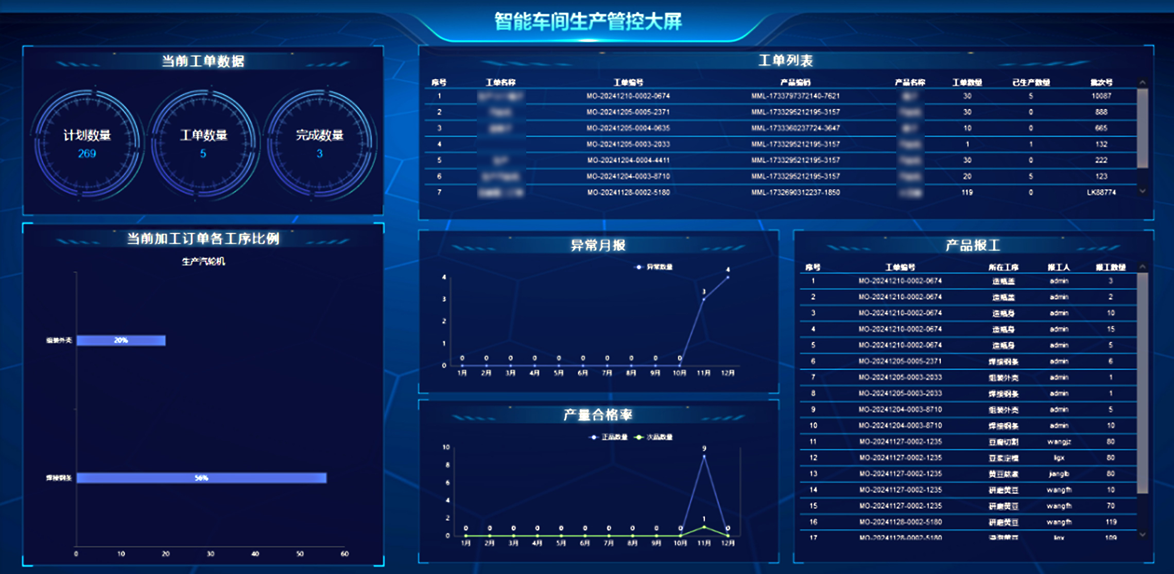 工單達(dá)成率、產(chǎn)品良率等數(shù)據(jù)通過(guò)可視化大屏展示,便于管理人員實(shí)時(shí)掌握生產(chǎn)進(jìn)度與質(zhì)量指標(biāo),做出更加科學(xué)合理的決策。