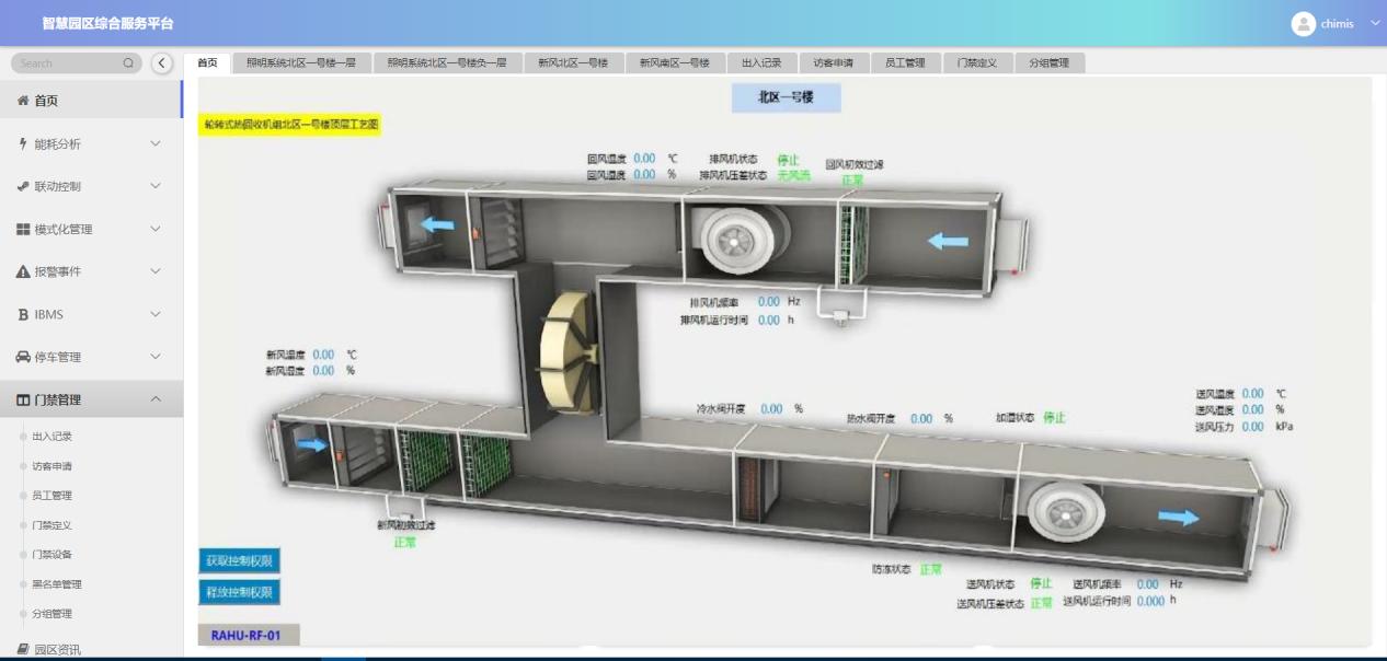 新風及空調智能運行:在自動模式下,綜管平臺依據實時季節、天氣及溫度設定參數,向數據接口下發風閥、風機、加濕等設備的控制指令,實現設備智能化運行。