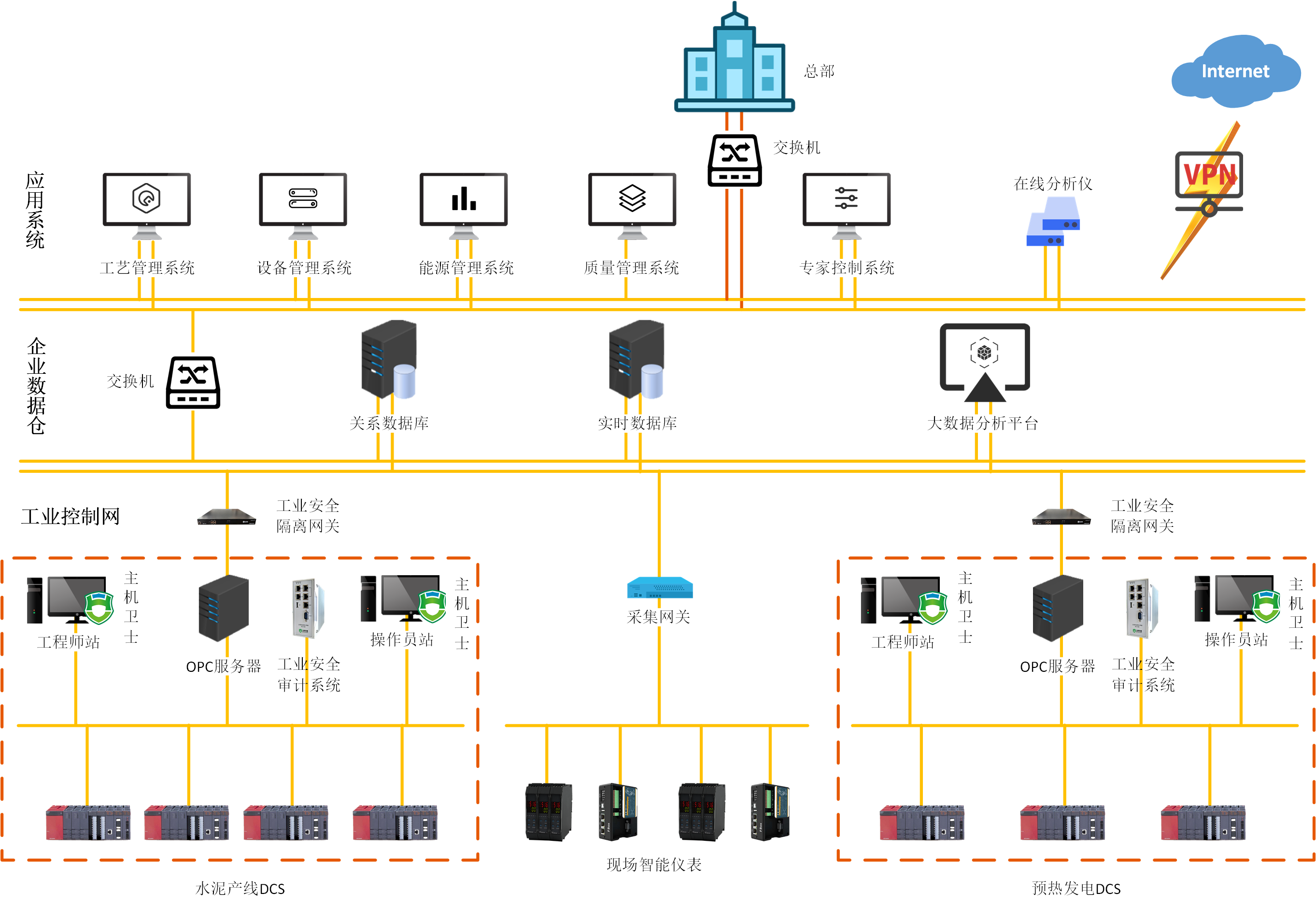 金隅水泥需要從網絡層、主機層、系統層、應用層和管理制度等多方面建立工業生產系統的網絡信息安全防護體系,提高系統整體風險防御等級,保證整個智能制造系統穩定有序的運行。