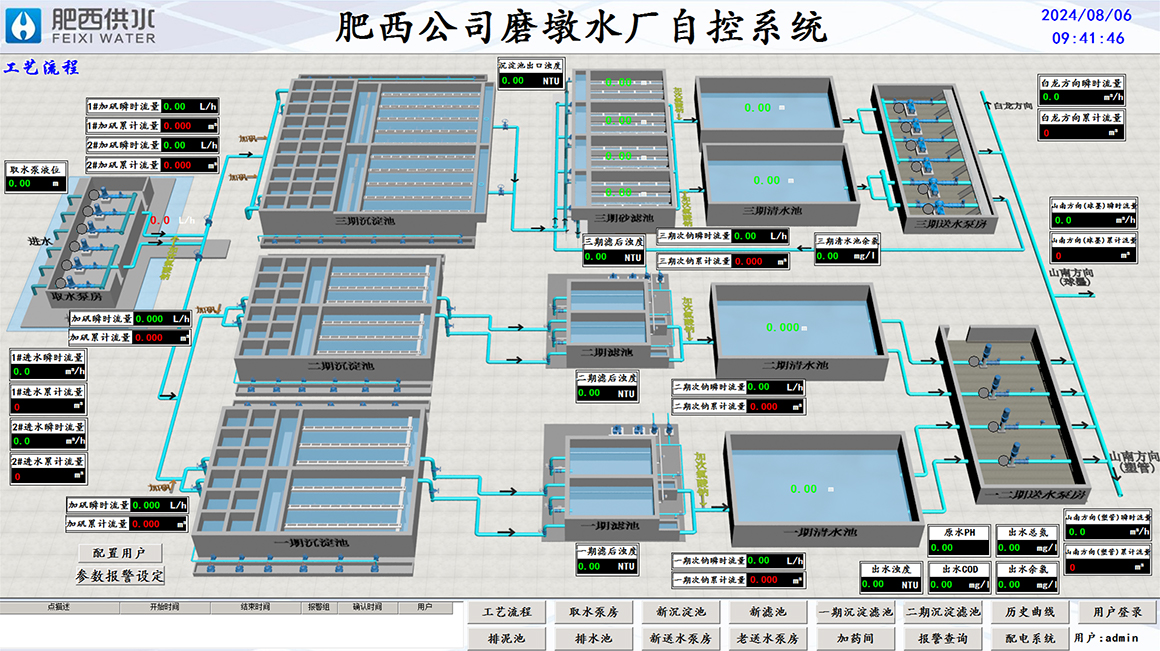 肥西縣磨墩水廠位于肥西縣山南鎮(zhèn),水源地為磨墩水庫,承擔肥西縣西南部供水任務。為滿足人口日益增長帶來的用水需求,2024年龍河口引水工程投入使用,為磨墩水庫增加外調(diào)水源。肥西磨墩水廠的多水源供水格局,需要集成水廠的各個子系統(tǒng),構(gòu)建一體化管理平臺,在提高水源保證率的同時優(yōu)化完善供水系統(tǒng)。