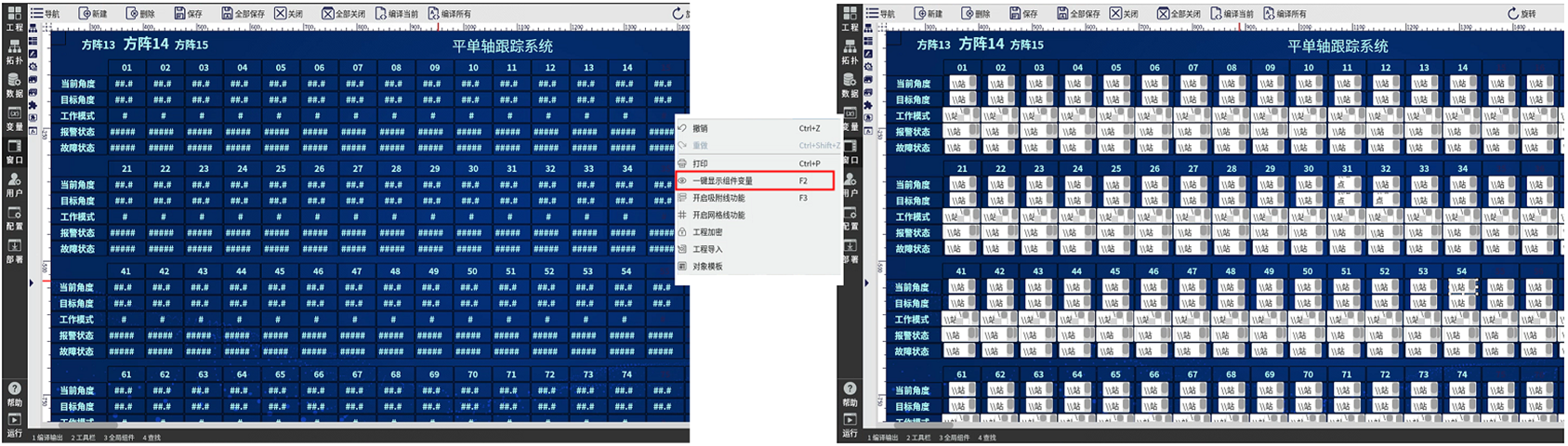 “一鍵顯示組件變量”符合操作習慣,可以直觀全面的展現元素的連接狀態,高效完成變量交叉檢查,提高工程人員的組態效率和工程準確率,進一步為項目整體質量增磚填瓦。