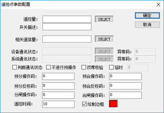 2. 關(guān)聯(lián)遙控量及遙信量,根據(jù)實(shí)際通信規(guī)約,填寫預(yù)分/預(yù)合操作碼、返校碼及分閘/合閘操作碼,可根據(jù)實(shí)際業(yè)務(wù)選擇雙席校驗(yàn);