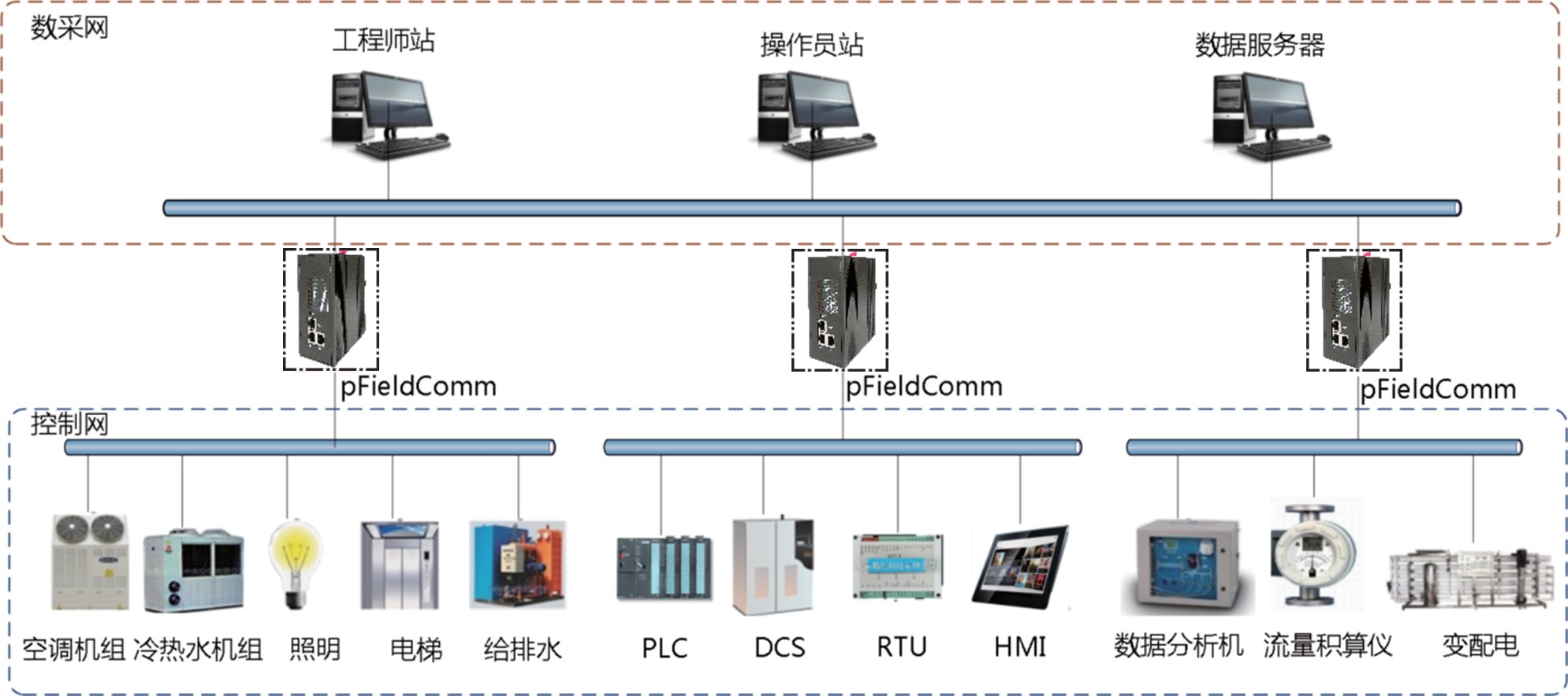 pFieldComm系列工業(yè)通信網(wǎng)關(guān)專門針對信息集成過程中各種軟件系統(tǒng)、控制器及數(shù)據(jù)采集設(shè)備通訊協(xié)議不一致造成的通信不暢問題而開發(fā)。采用高性能嵌入式硬件平臺,內(nèi)嵌力控華康自主研發(fā)的工業(yè)數(shù)據(jù)采集和處理系統(tǒng),具有多種通信規(guī)約庫,可以實現(xiàn)對不同軟件系統(tǒng)、控制器和現(xiàn)場設(shè)備數(shù)據(jù)的集中采集、預(yù)處理、協(xié)議轉(zhuǎn)換和復(fù)用轉(zhuǎn)發(fā)??捎米鞣植际綌?shù)據(jù)采集裝置、工業(yè)協(xié)議轉(zhuǎn)換網(wǎng)關(guān)、電力通訊服務(wù)器或通訊前置機(jī)、能源、環(huán)保、樓宇數(shù)據(jù)采集設(shè)備等使用,廣泛應(yīng)用于發(fā)電、變電、化工、石油、樓宇、水利、冶金、機(jī)械、交通、環(huán)保等領(lǐng)域異構(gòu)系統(tǒng)的互聯(lián)互通和信息集成。