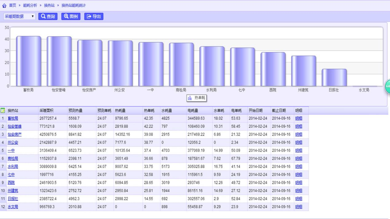 通過對換熱站耗熱、耗電、耗水等信息的管理分析,及時發現供熱問題,及時解決問題,為熱力公司節約能源,降低運行費用。