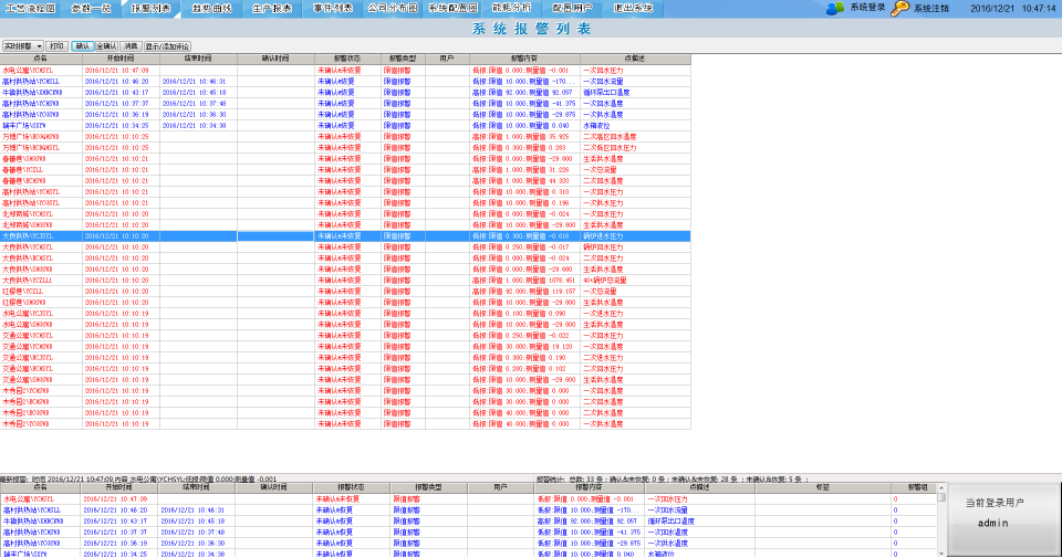 系統實時顯示并記錄各種報警信息,如運行數據超限、儀表工作電源不正常、通訊故障等報警信息。同時支持語音、短信等報警形式,對報警信息(包括時間、地點、報警值等)進行存儲,以便查詢。