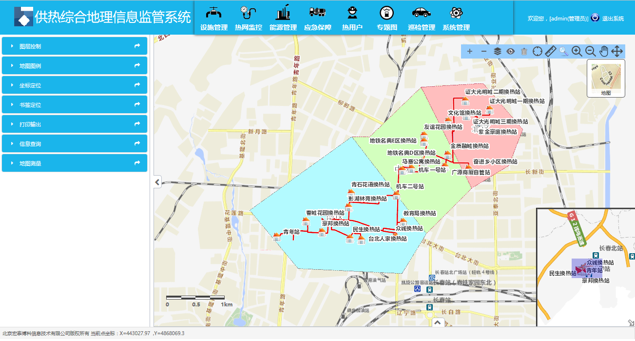 建立基于GIS的城市熱網管理信息系統,并且與監控調度系統無縫集成,通過地理系統實時查看各種生產數據,實現對城市熱網綜合管理,能隨時掌握全市輸配系統的最新資料,供有關部門管理集中供熱管網、規劃設計、運行調度、決策使用。