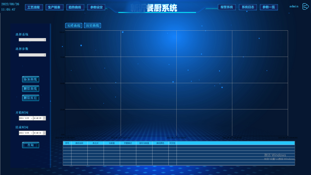操作員可通過菜單或按鈕進(jìn)入實(shí)時(shí)曲線畫面或歷史曲線畫面,可選擇需要的工藝參數(shù)查看實(shí)時(shí)曲線或歷史曲線,可同時(shí)顯示多條實(shí)時(shí)曲線,可對曲線進(jìn)行放大或縮小,可任意選擇需要查看的時(shí)間段。