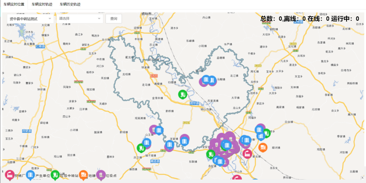 將用戶所在客戶平臺或組織機構下的車輛進行集中管理,規劃收運路線,實現車輛實時動態監管,及車次收運信息統計。