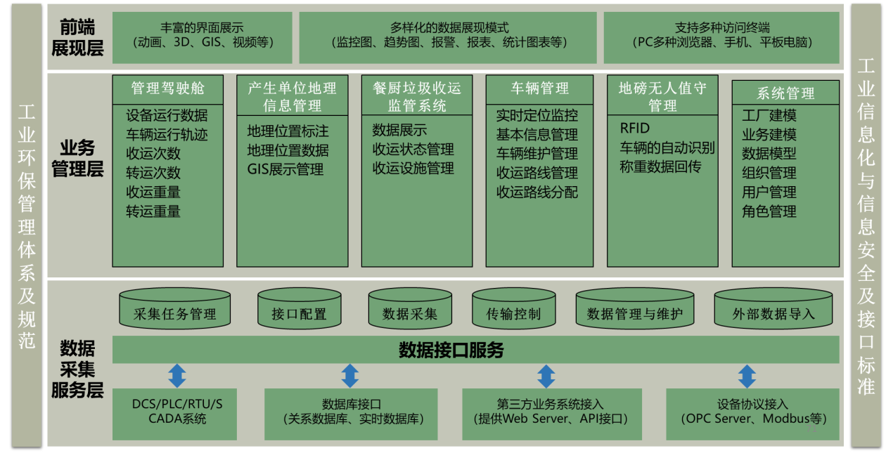 力控環衛中轉站綜合自動化監控與信息化管理系統建設方案通過對相關環衛元素指標的自動采集和有效利用,可以將分散在各處的環衛數據形成數據資源,行程數據共享,再利用大數據處理技術對數據資源進行分析、挖掘、應用、管理,實現人、車、物、事全過程實時管理,消滅信息孤島,降低環衛運營、監管成本,能夠大大提升企業的精細化管理水平。